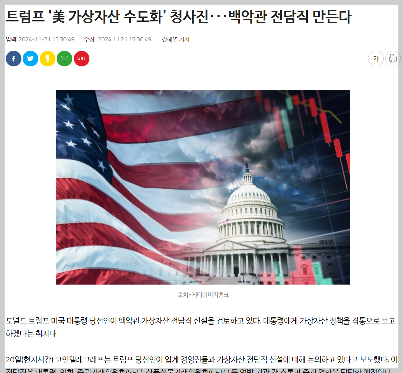거래소의 비트코인 보유량도 급속도롤 줄어들고 있고 많은 기관들이 비트코인을 사지 못해 포모가 오고 있는 상황이니 말이다. 또한 내녀 1월 트럼프 정권에서 비트코인 매수 법안을 발의 중인데 이것이 확정된다면 비트코인 가격은 진짜 떡상할 수 있다.