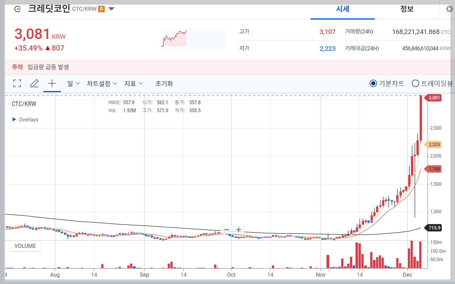 530원대 하던 크레딧 코인은