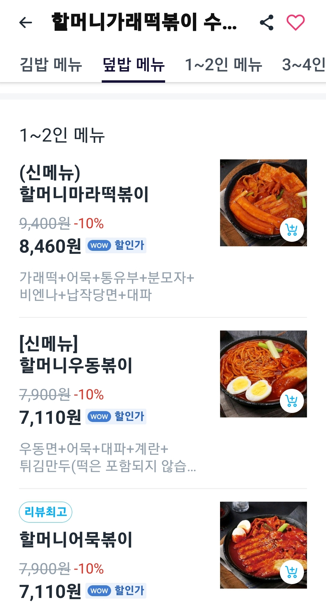 마라떡볶이 로제 가래떢복이 우동볶이등 다양한 떡볶이들이