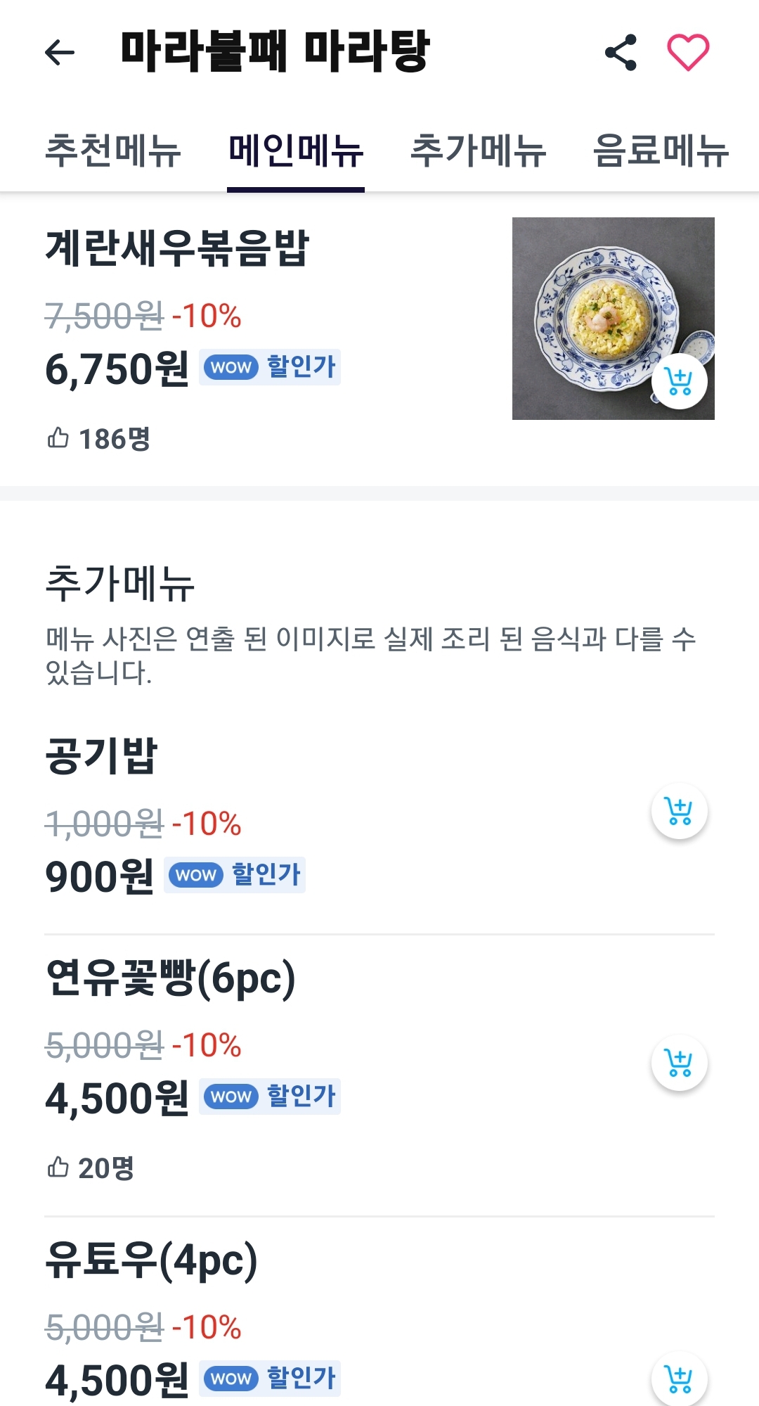 셀프 마라탕과 계란새우 볶음밥 시켜봤는데 마라탕은 솔직히 추가하는대로 가격이 나가는 거라