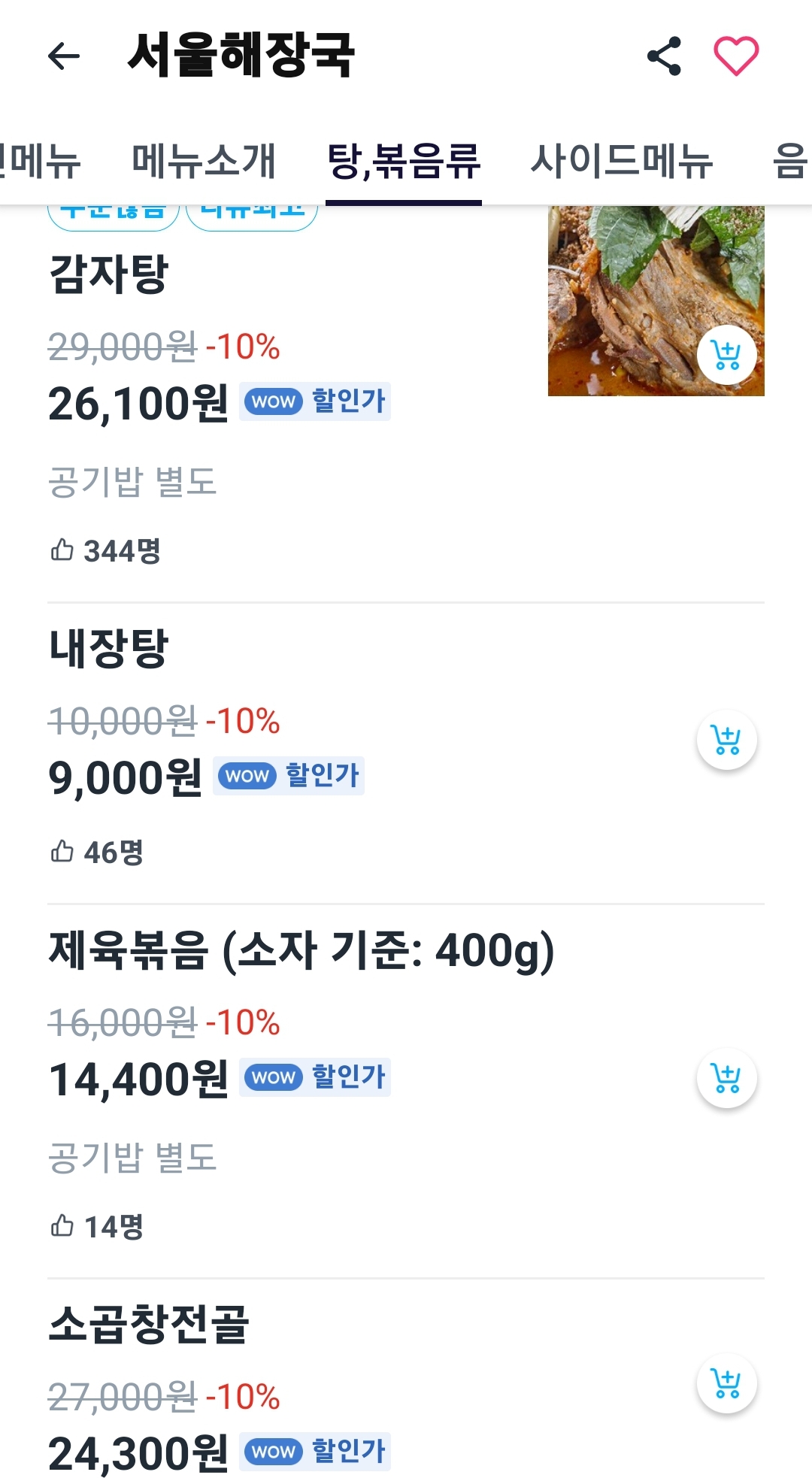 분당 미금이랑 수원에 있는 서울 감자탕이다.