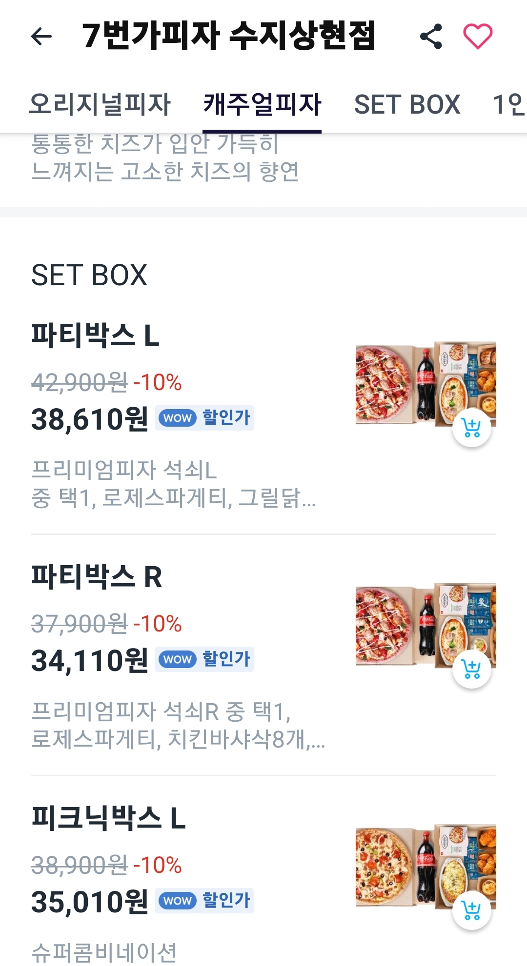 파티박스에 있는 먹을 만한 치킨도 3조각뿐이라 파티박스도 시키지 않고 피자 단품만 시킬 거 같다.