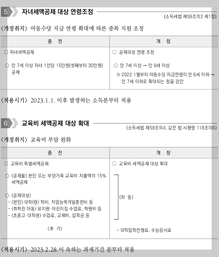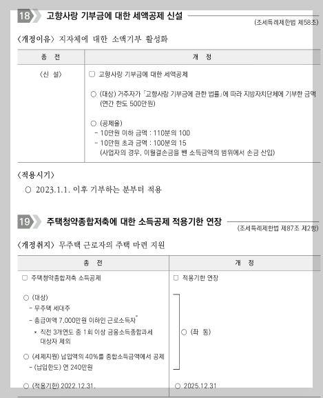 2023년 개정된 연말정산 소득세법 내용(국세청 원문내용 참조)