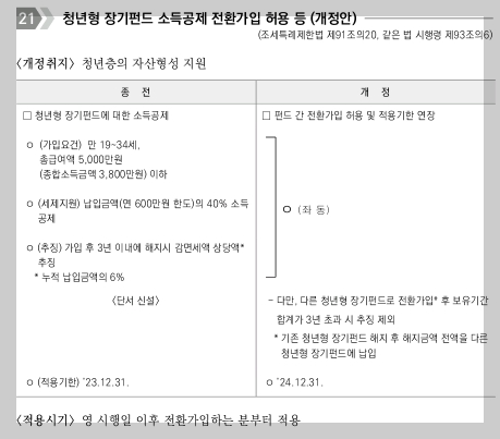 만 19세 ~34세까지의 청년층의 자산형성을 지원하기 위해 개정이 되었습니다.